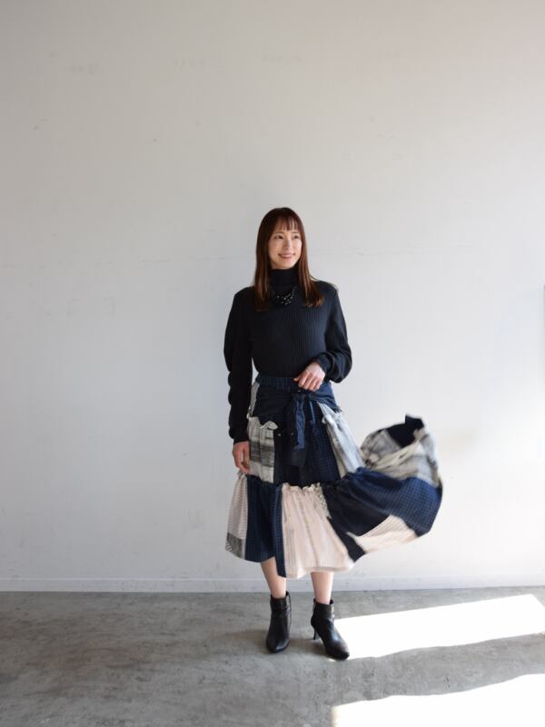 捨てられるはずだった4枚のシャツが、職人の手によって新たな命を吹き込まれました。Re:unoのアップサイクルは、ただの再利用ではありません。一点一点異なる表情を持つ、世界に一つだけのスカートです。